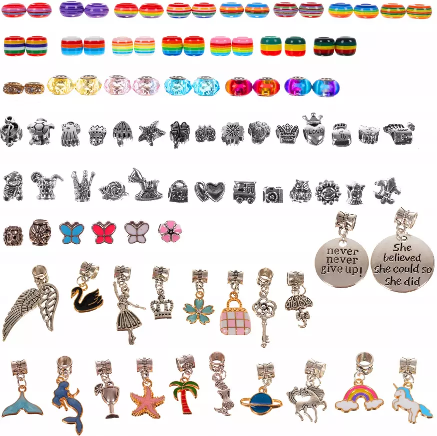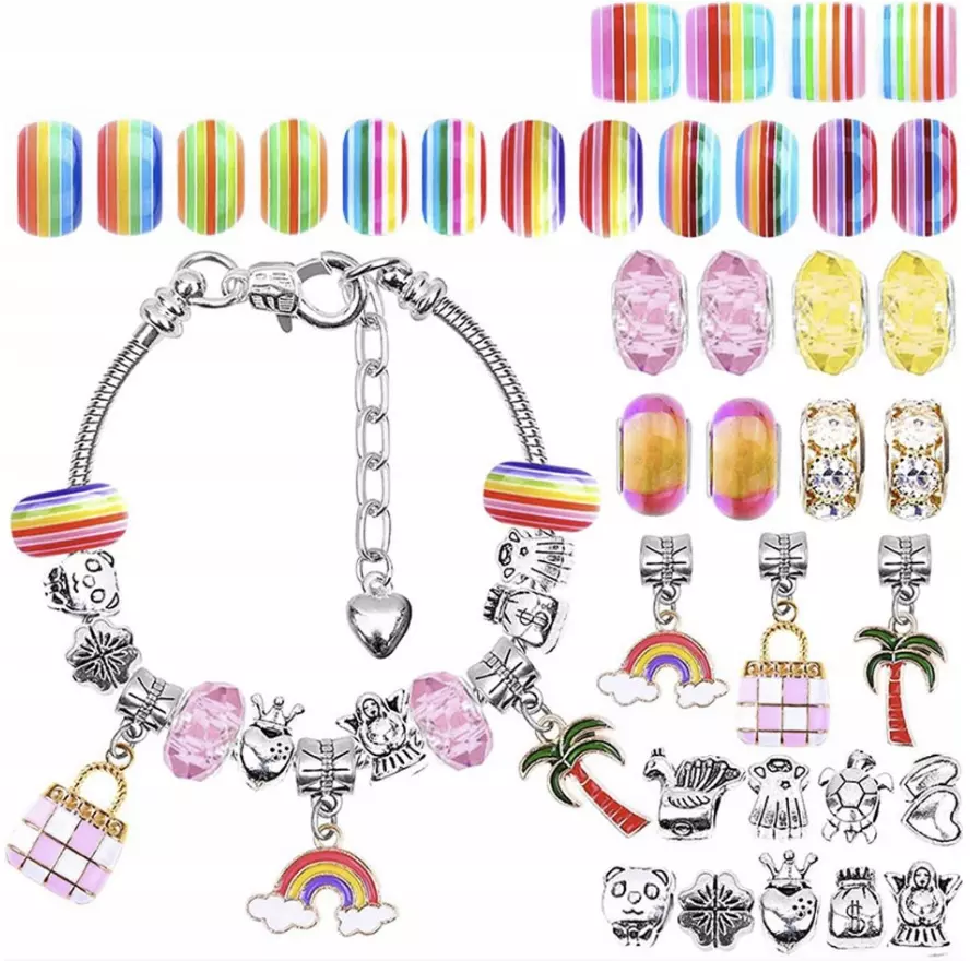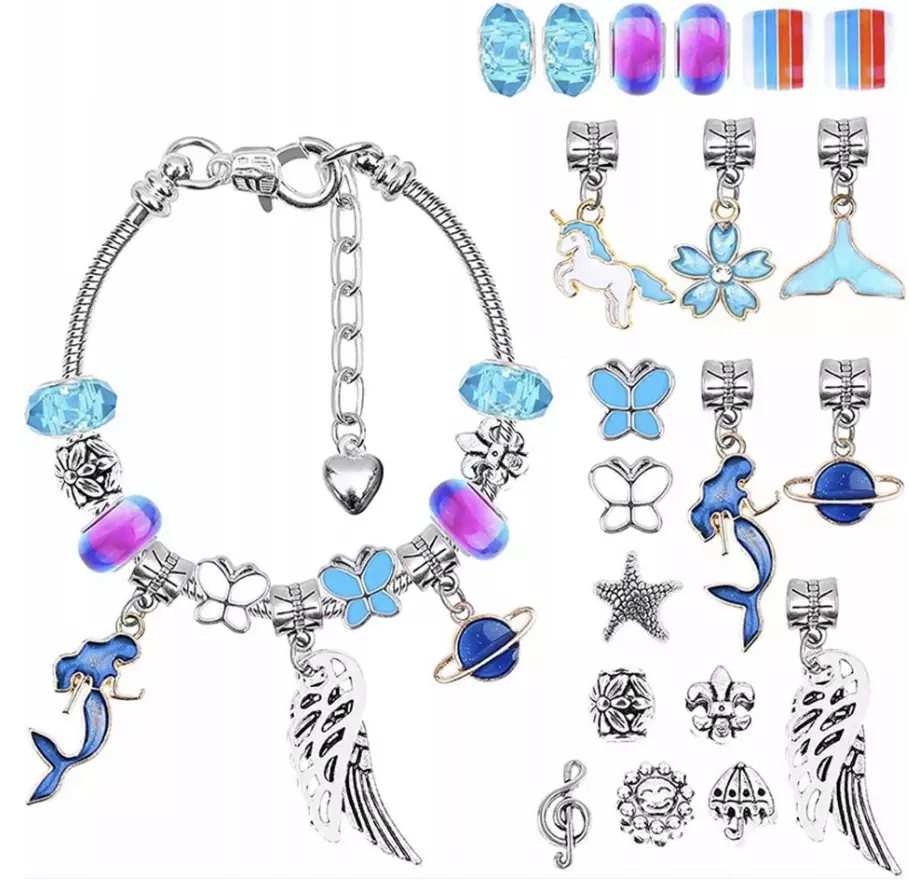 Этот набор позволяет девочкам смешивать и сочетать бусины и подвески, чтобы создать стильный браслет для любого наряда или случая. Браслет регулируется по длине (15-20 см) и подходит для запястья любой девочки.