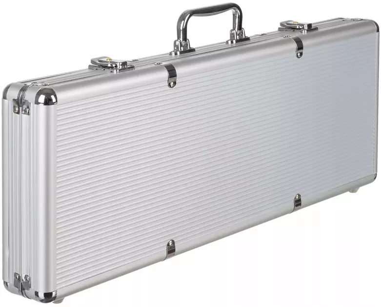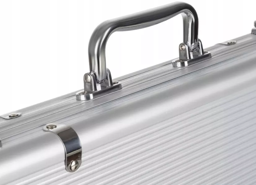 Покерный набор упакован в очень прочный алюминиевый кейс, оснащенный двумя застежками-клипсами, поэтому нет необходимости каждый раз запирать его на ключ.