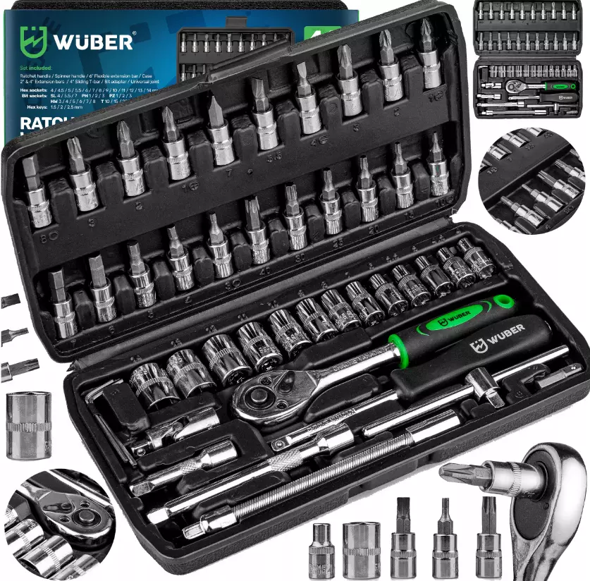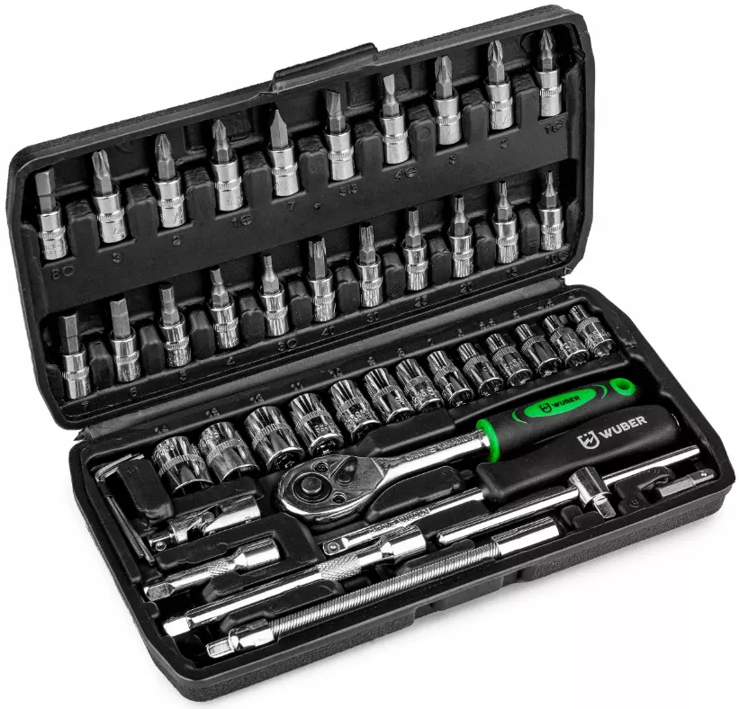 НАБОР ИНСТРУМЕНТОВ БИТЫ ТОРЦЕВЫЕ ГОЛОВКИ 46 ПРЕДМЕТОВ WUBER