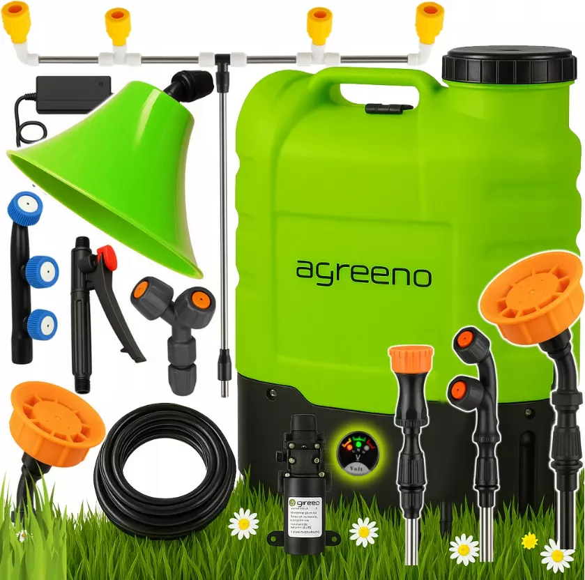 Аккумуляторный садовый опрыскиватель - это универсальный, многоцелевой садовый инструмент для ухода за растениями. С помощью опрыскивателя AGREENO вы можете комплексно ухаживать за растениями - инструмент позволяет опрыскивать растения в сельском хозяйстве, садоводстве, в домашних садах и на приусадебных участках, а также обезжиривать, распылять средства от комаров и москитов, распылять химикаты для дезинфекции животноводческих помещений и многое другое.