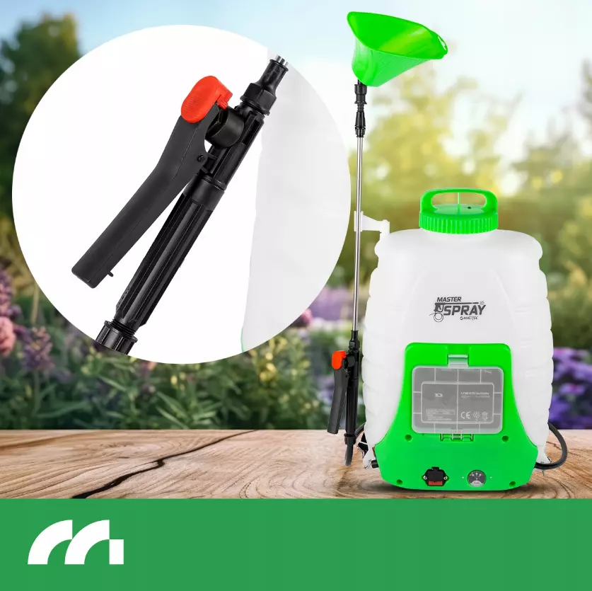 MasterSpray-18L - это продукт, который идеально подходит для больших садов, парков и сельскохозяйственных полей. Благодаря большому объему бака 18 л вы можете работать дольше без необходимости частой дозаправки. Удобные ремни и эргономичный дизайн обеспечивают комфорт даже при длительном использовании.