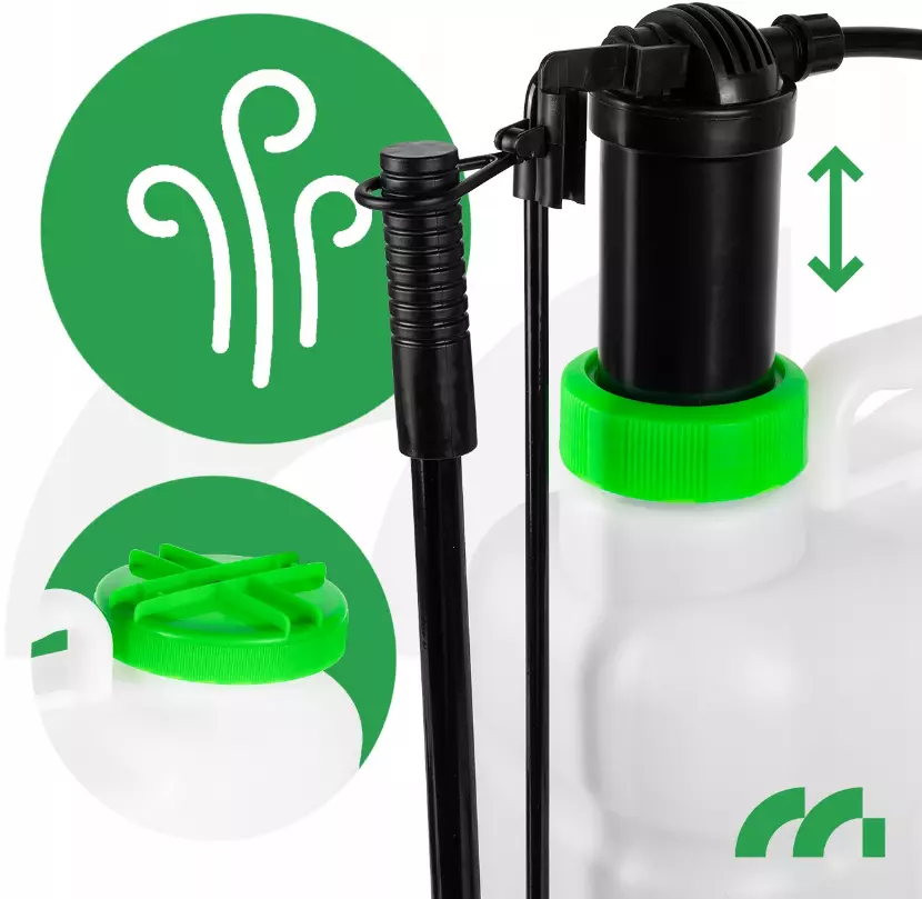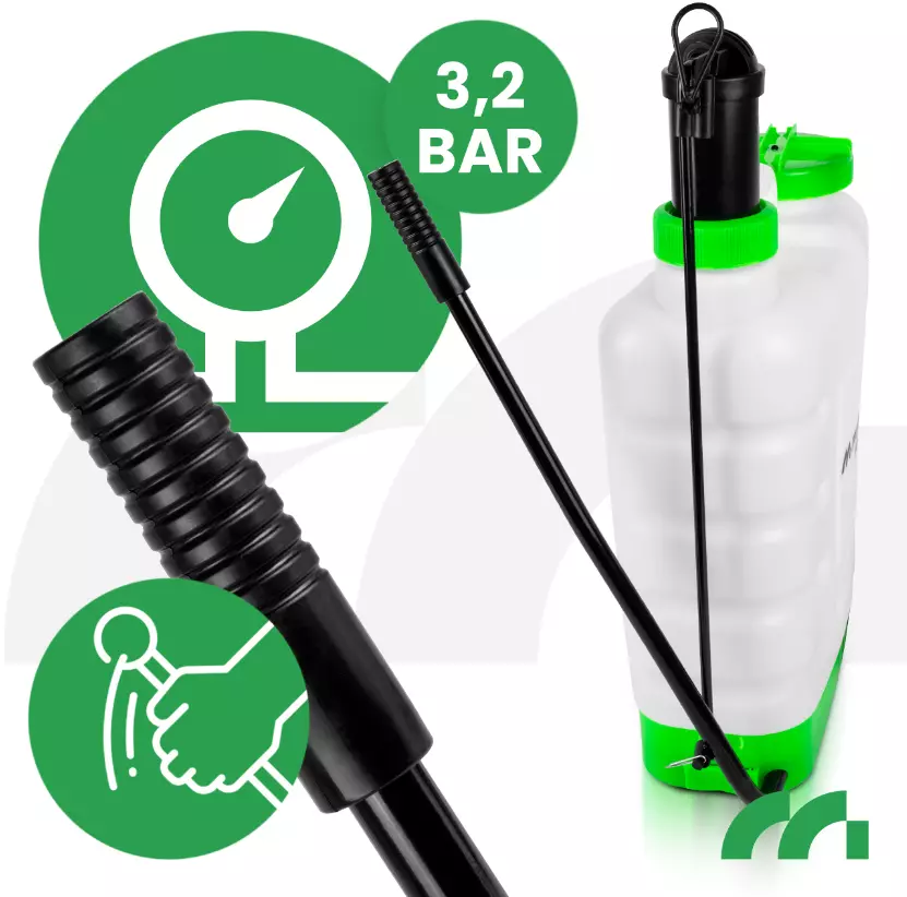 MasterSpray-16L - это ручной опрыскиватель высокого давления, который идеально подходит для садов, огородов и ухода за растениями в теплицах и на фермах. Большая емкость бака (16 л) позволяет работать дольше без необходимости частой доливки жидкости. Регулируемые лямки и контурная форма резервуара, повторяющая форму спины, обеспечивают комфорт во время использования.