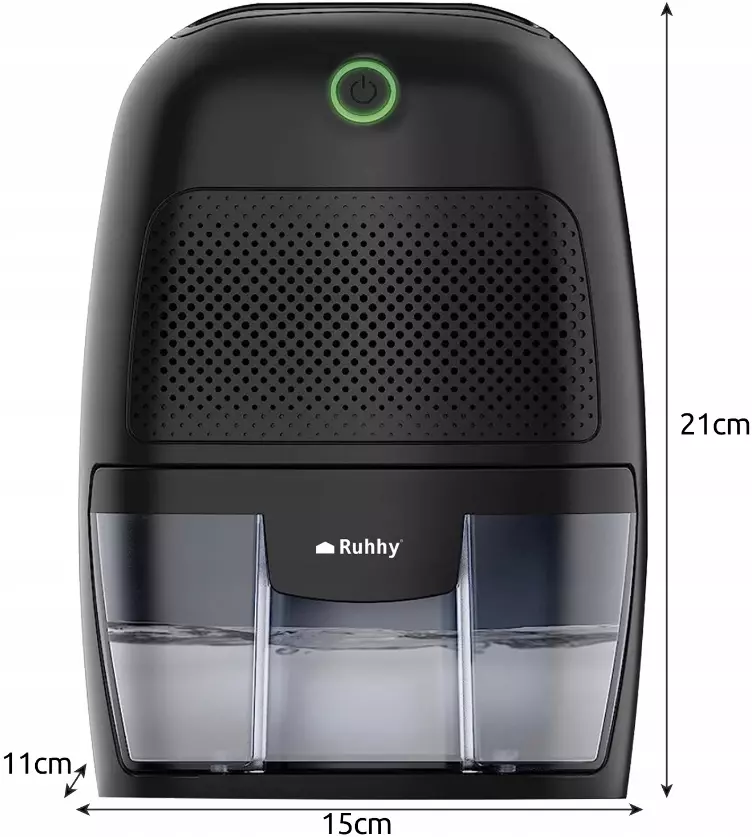 - ЭФФЕКТИВНОСТЬ - этот уникальный осушитель воздуха RUHHY отлично улавливает и удаляет воду, скопившуюся в воздухе. Не требует картриджей и химикатов. Часто в помещении с повышенной влажностью появляется неприятный запах, грибок, плесень. Эти условия неблагоприятны для здоровья и влияют на наше самочувствие. Осушитель всасывает влажный воздух, а затем конденсирует его в резервуаре для воды. Его производительность составляет целых 300 мл сконденсированной воды в сутки! Он позаботится о надлежащей влажности в вашем доме, а значит о здоровье вас и ваших близких.