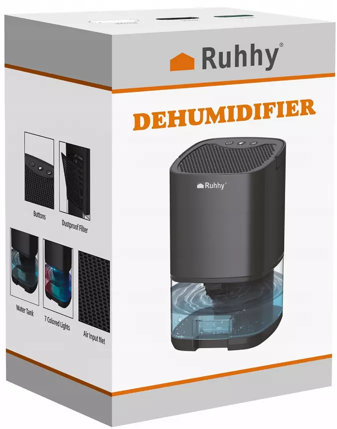 - ЭНЕРГОСБЕРЕЖЕНИЕ - мощность осушителя составляет 36 Вт, поэтому потребление электроэнергии невелико. Использование осушителя RUHHY не создает нагрузки на домашний бюджет, его производительности достаточно для эффективной работы прибора. Благодаря компактным размерам его можно разместить в любом месте дома: на столе, комоде или полу.