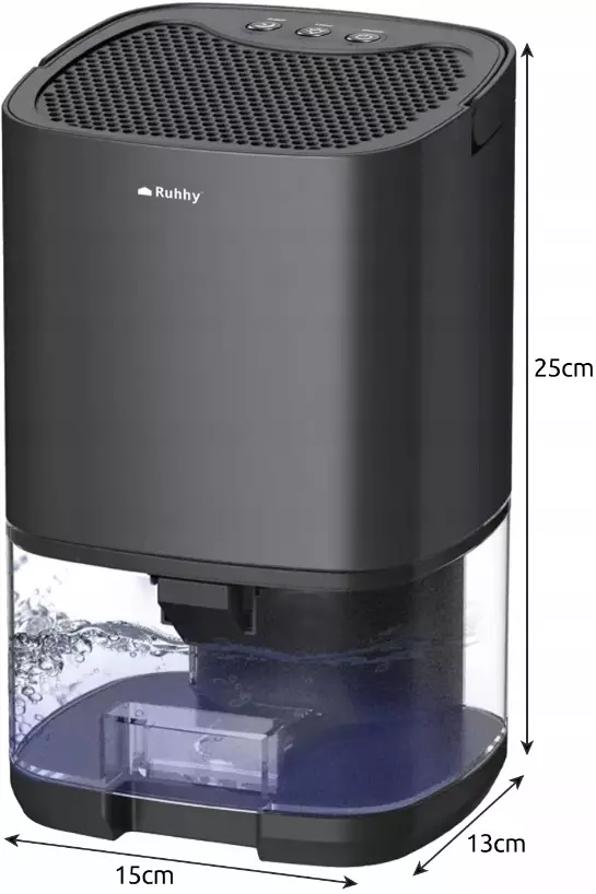 - Невероятная эффективность - этот уникальный осушитель RUHHY идеально улавливает и удаляет скопившуюся в воздухе воду. Для этого не нужны ни картриджи, ни химические вещества. Часто в помещении с повышенной влажностью появляется неприятный запах, грибок и плесень. Такие условия вредят здоровью и плохо сказываются на нашем самочувствии. Осушитель всасывает влажный воздух, а затем конденсирует его в резервуаре с водой. Его эффективность составляет до 350/мл конденсированной воды в день! Он позаботится о правильной влажности воздуха в вашем доме, а значит, о вашем здоровье и здоровье ваших близких.