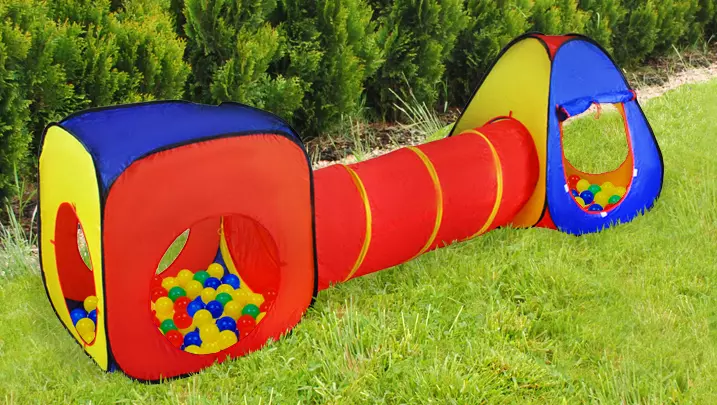 Палатка для детей – это не только место для игр, но и предмет, интенсивно развивающий их воображение, дающий чувство защищенности и повышающий двигательную активность как дома, так и на улице. Раскладной домик - отличное развлечение для самых маленьких! Две палатки, соединенные гибким туннелем, доставят массу удовольствия каждому маленькому исследователю. Коническая палатка открывается спереди и соединяется туннелем с кубической палаткой с 3 отдельными выходами. Благодаря этому, имея несколько наборов, вы сможете свободно настраивать элементы и создавать удивительные лабиринты.