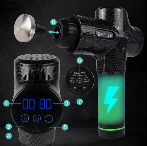 Массажный пистолет MalTec PRO-GUN3800 7в1