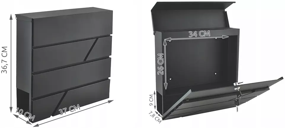 Дверца, открывающаяся вперед, запирается на сувальдный замок и открывается достаточно широко, чтобы обеспечить свободный доступ к внутренней части почтового ящика. Это позволяет эффективно извлекать даже крупную корреспонденцию. В основании почтового ящика имеется отверстие для газет, рекламных листовок или флаеров.