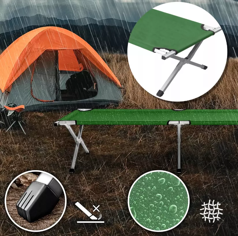Изготовленная из полиэстера 600D, кровать устойчива к влаге и другим погодным условиям, что делает ее идеальным выбором для использования на открытом воздухе, будь то кемпинг или пикник.