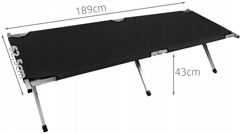 Небольшой вес полевой кровати + чехол позволяет легко транспортировать ее. Прочная металлическая конструкция из нержавеющей стали рассчитана на многолетнюю эксплуатацию.