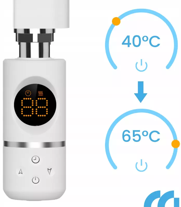 Благодаря встроенному термостату прибор позволяет регулировать температуру от 40°C до 65°C, обеспечивая стабильное и комфортное тепло без необходимости постоянно регулировать настройки вручную.