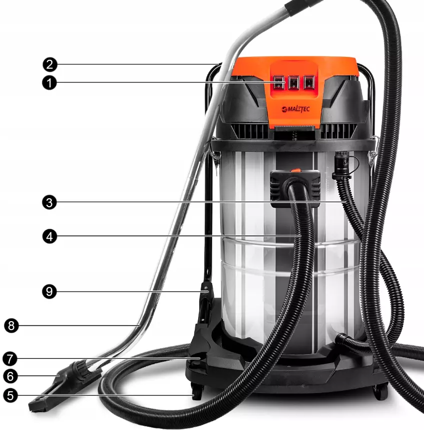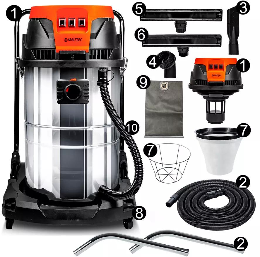 Промышленный пылесос трех-турбинный 80л Maltec (Польша)