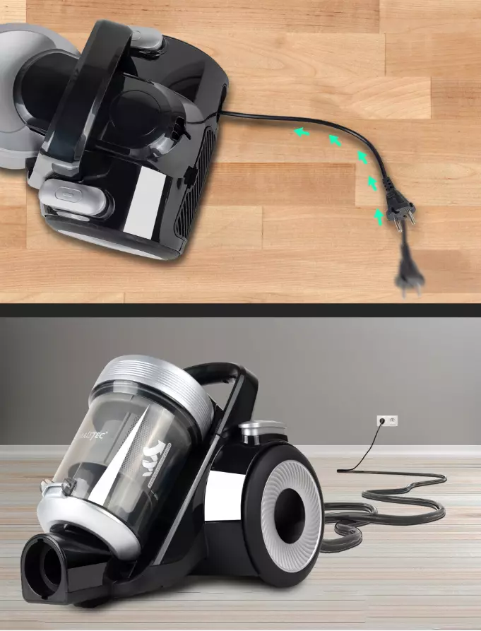 Пылесос производит циклоны, которые очень эффективно отделяют частицы пыли от проходящего воздуха. Благодаря этому выходящий воздух чище всасываемого. Эффективность очистки поддерживается дополнительными фильтрами, задерживающими примеси.