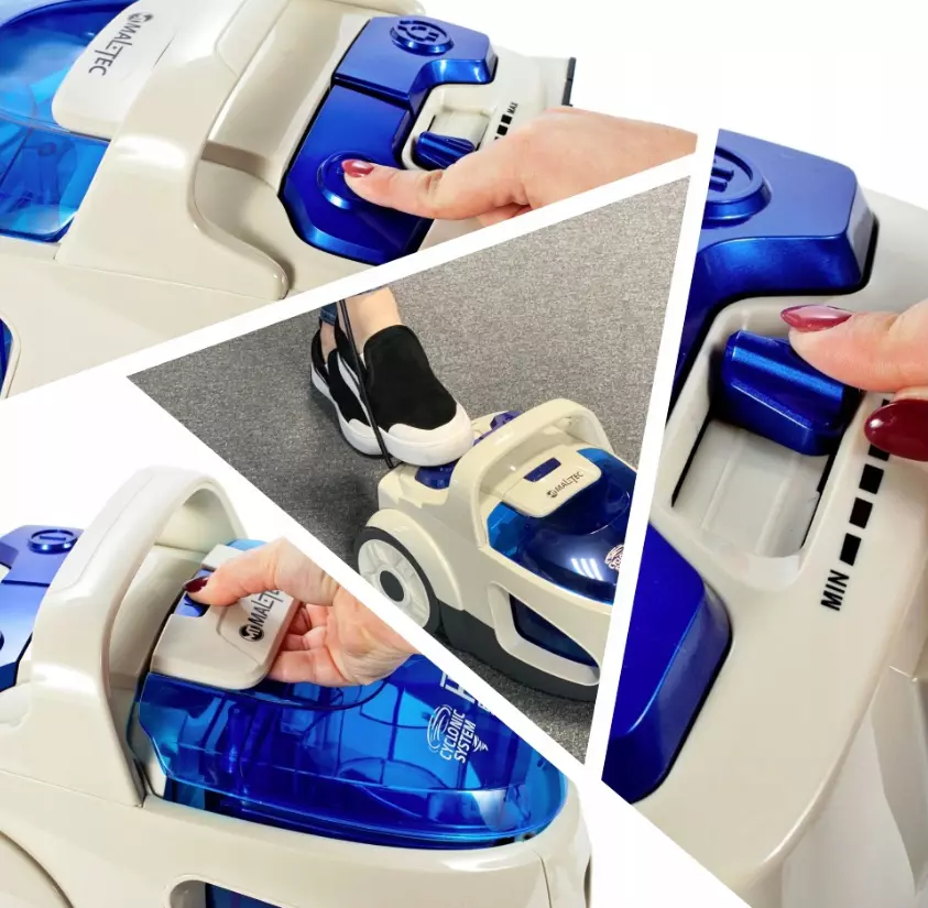 Когда мешок заполняется в традиционном пылесосе, мощность всасывания постепенно снижается. Благодаря циклонической технологии пыль отделяется от воздуха, поэтому мощность остается постоянной.