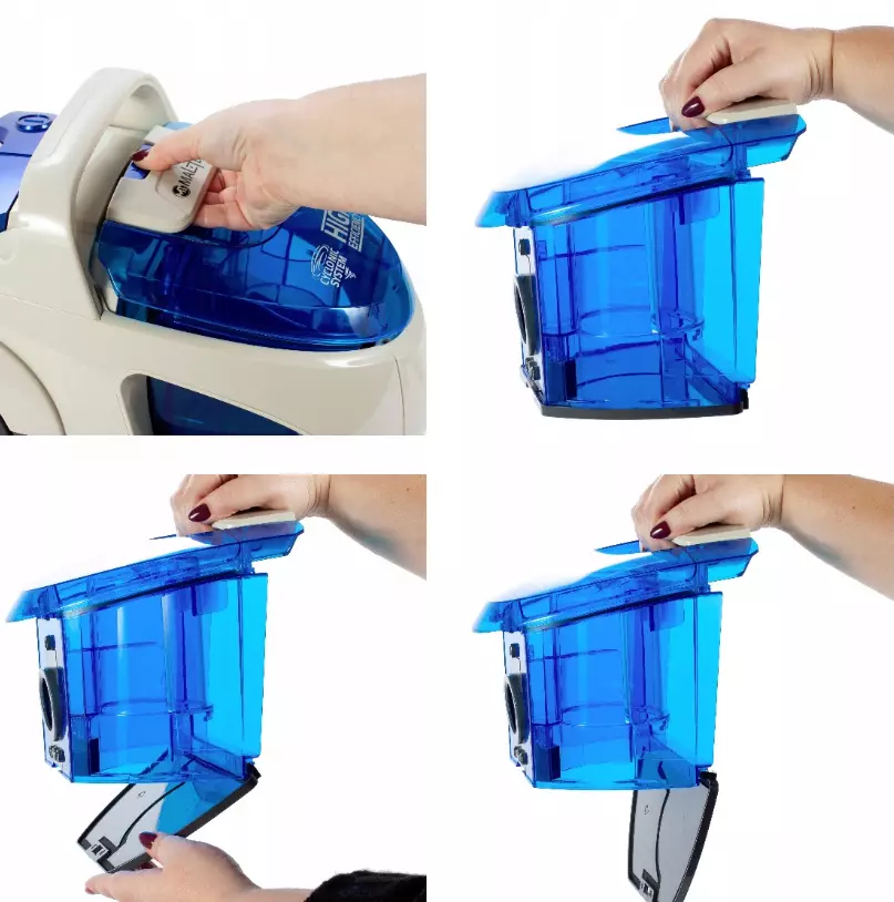Опорожнение пылесоса еще никогда не было таким простым и приятным! Просто поместите его в корзину, отпустите замок на контейнере, чтобы открыть его и высыпать все содержимое.