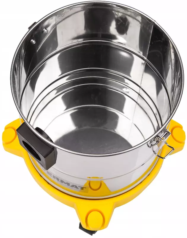 Жаростойкий бак из нержавеющей стали емкостью 20 литров позволяет работать без частого высыпания золы. Благодаря большой емкости бака мы можем легко использовать устройство в качестве промышленного пылесоса.