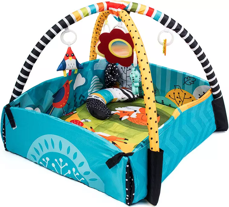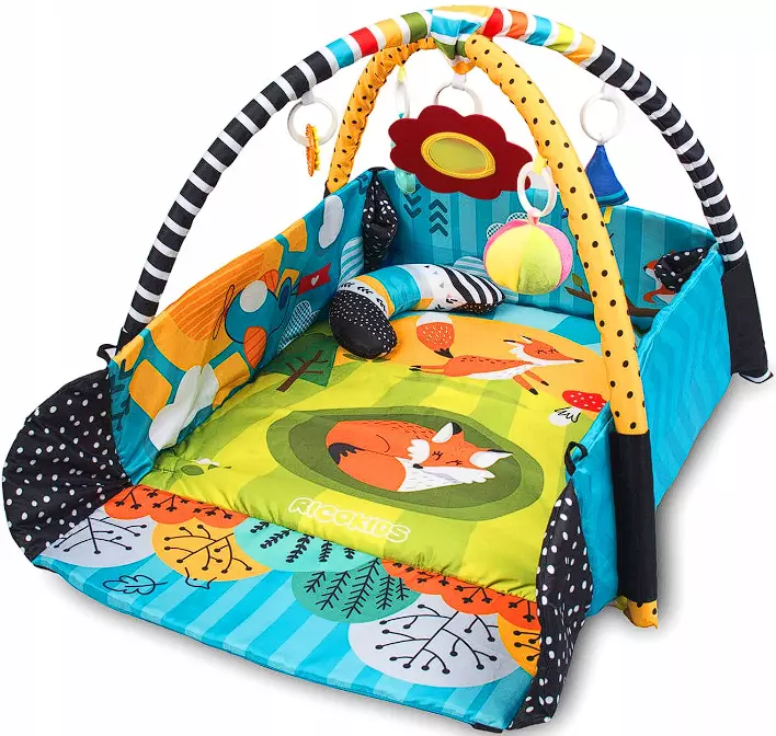 - в комплект входят: коврик, 4 стены, 2 оголовья, 7 многофункциональных игрушек, подушка.