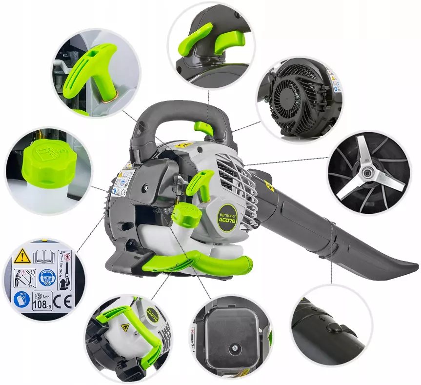 ✅ ВОЗДУХОДУВКА ДЛЯ ЛИСТЬЕВ/ПЫЛЕСОС С ИЗМЕЛЬЧИТЕЛЕМ AGREENO AG078