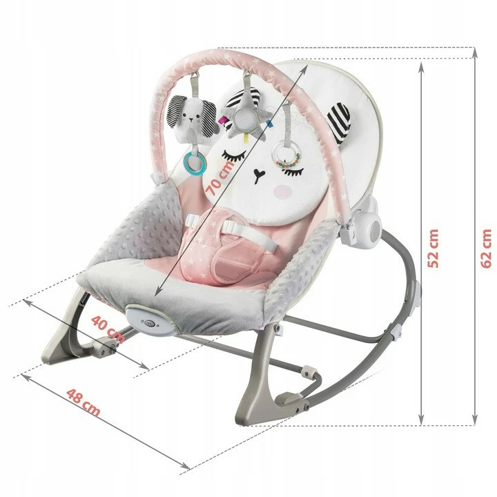 Шезлонг был оснащен съемным оголовьем с прикрепленными шуршащими игрушками.. Они будут развлекать вашего ребенка, пока вы можете расслабиться. Эти уникальные игрушки стимулируют зрение и развивают чувство осязания.