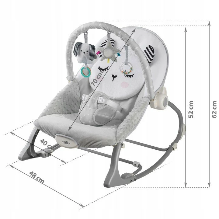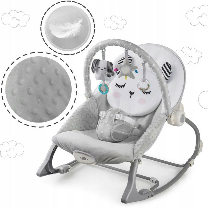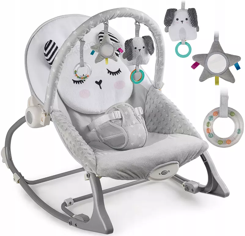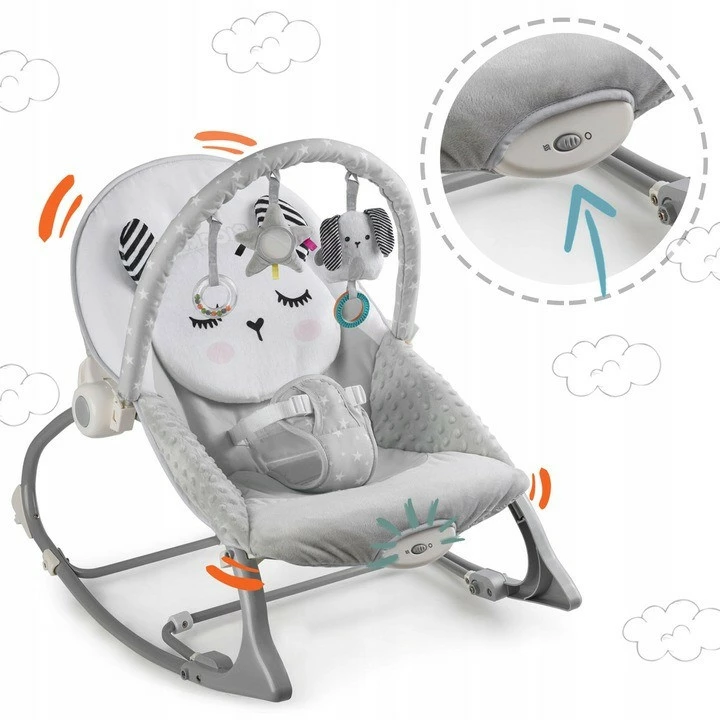 Шезлонг был оснащен съемным оголовьем с прикрепленными шуршащими игрушками.. Они будут развлекать вашего ребенка, пока вы можете расслабиться. Эти уникальные игрушки стимулируют зрение и развивают чувство осязания.