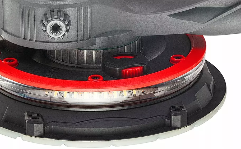 Устройство имеет светодиодную подсветку на 360° , поэтому вам не нужно использовать дополнительные галогенные светильники для освещения стены. Рабочая зона освещается именно там, где мы шлифуем, что делает работу более точной, а желаемый эффект легче достичь.