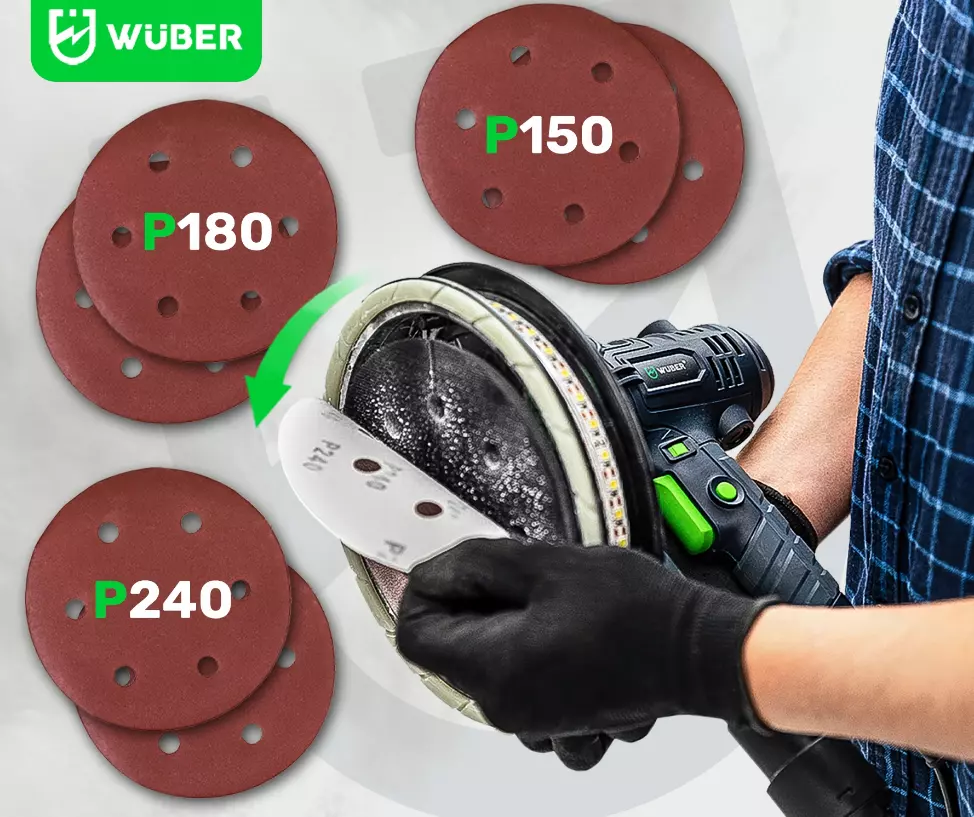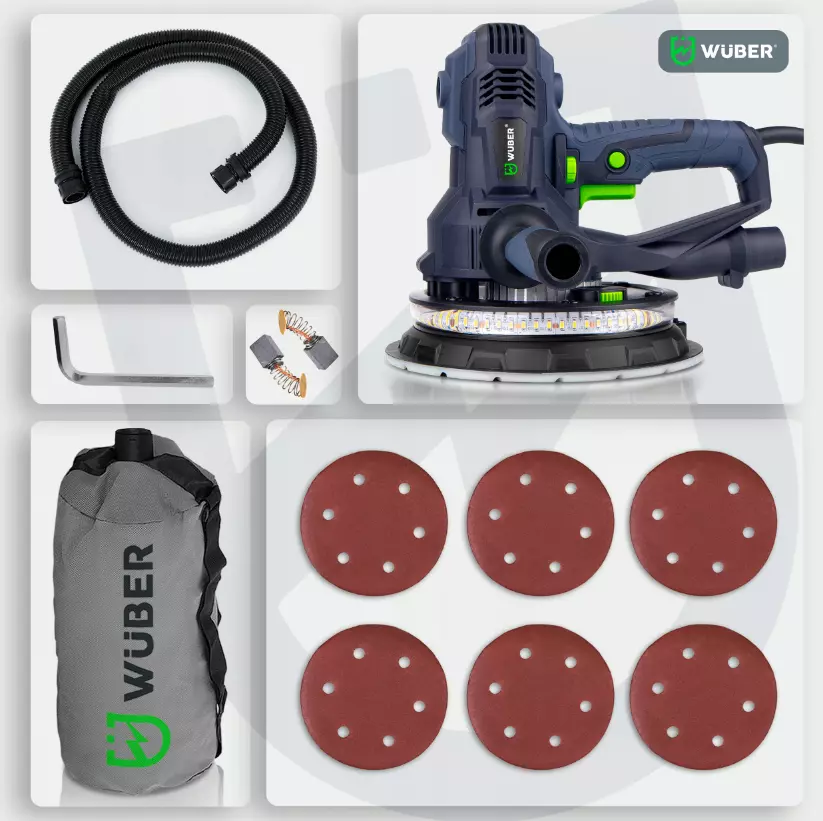 Шлифовальная машина Wuber оснащена специально разработанным ротором с медной обмоткой, защищенным двойным зубчатым колесом. Это решение не только защищает устройство от перегрева, но и обеспечивает идеальное и мгновенное удаление пыли.