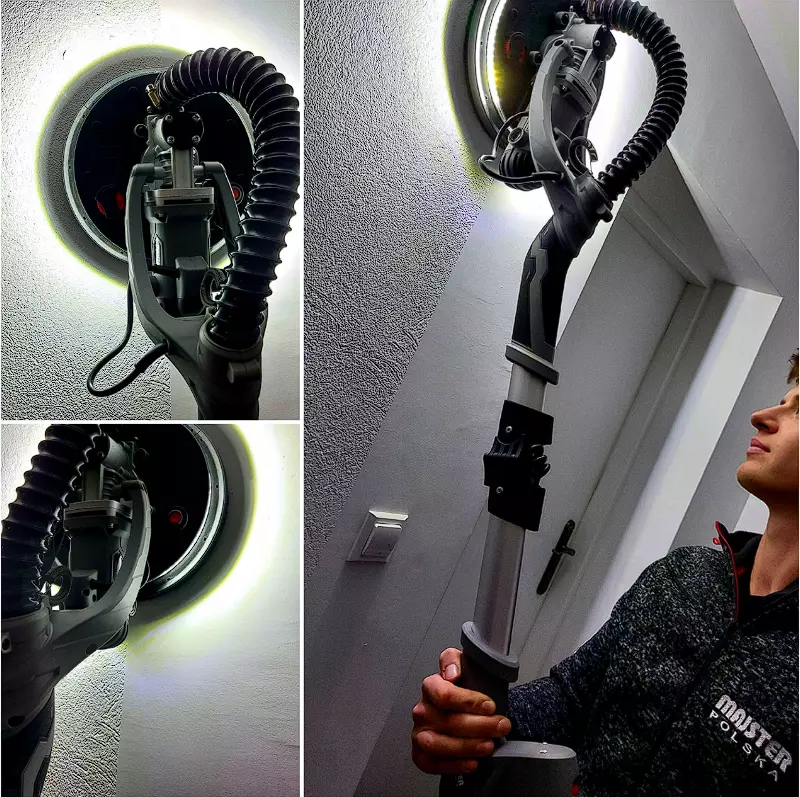 Устройство имеет телескопическую ручку, благодаря которой мы можем легко шлифовать даже в высоких помещениях.