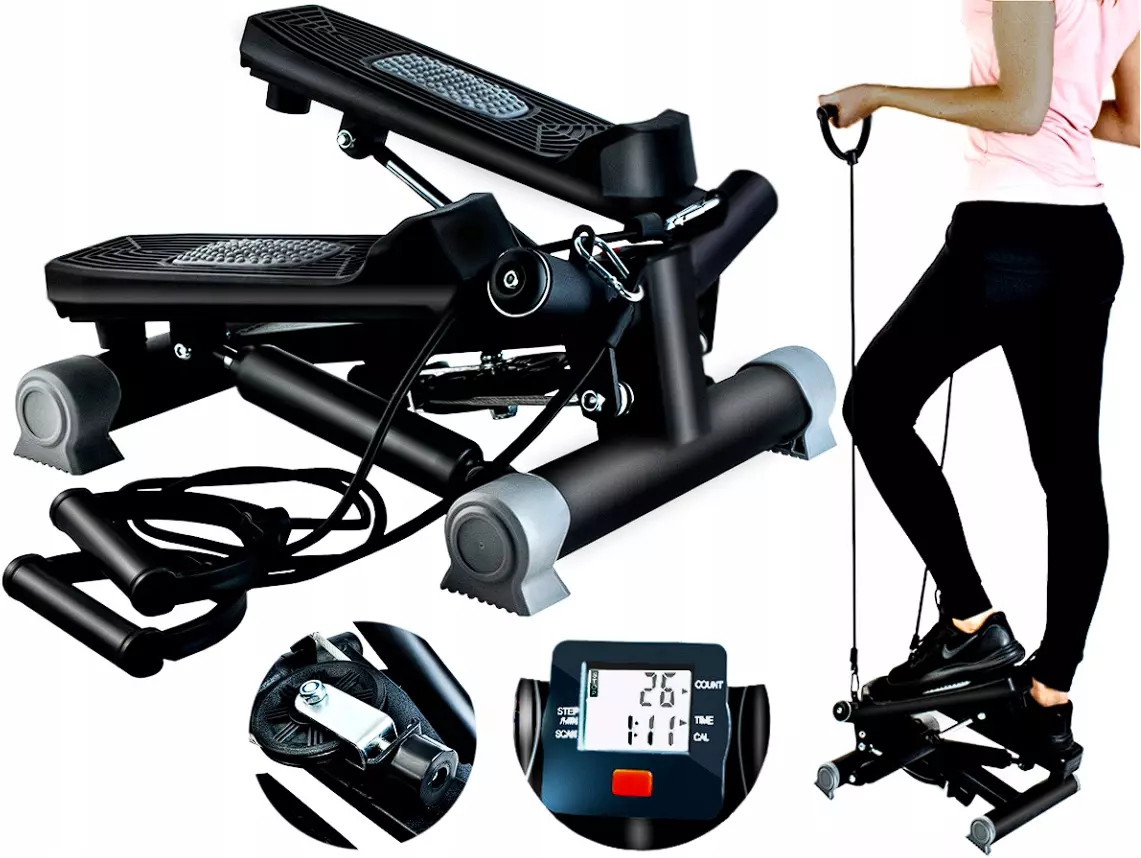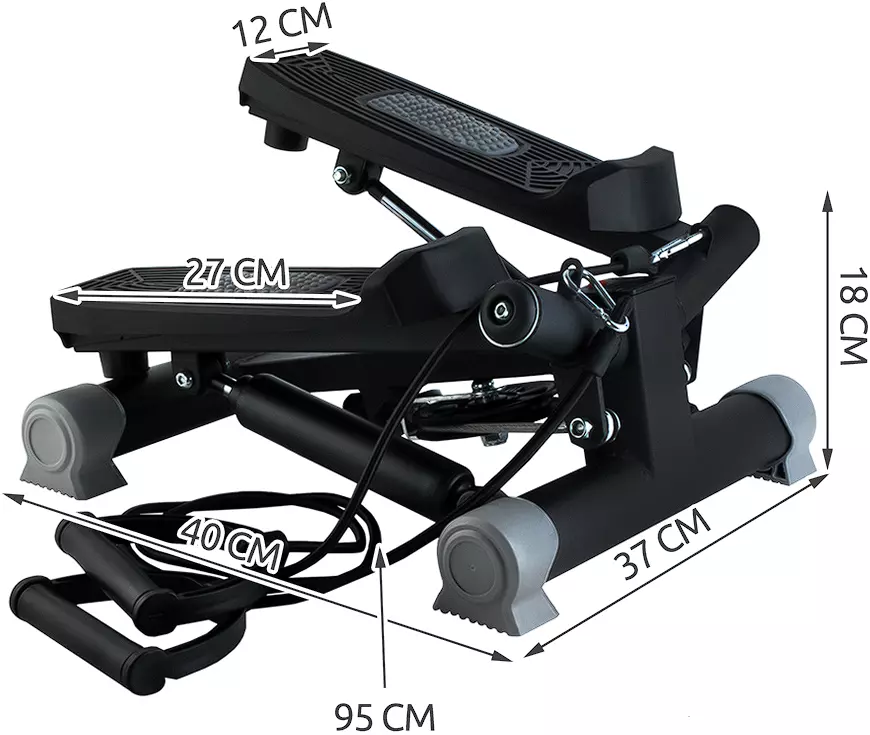 Таким образом, весь тренировочный комплекс гарантирует развитие не только ног и рук, но и всего тела. Комбинирование упражнений в положении стоя также активизирует группы мышц, расположенные в других частях тела. Тренажер регулируется по рабочей высоте ступенек, что влияет на сложность тренировки. Таким образом, новички могут извлечь выгоду из настройки, которая позволяет им прилагать меньше усилий, а более продвинутые пользователи могут увеличить диапазон движения шагов, что сделает упражнение более интенсивным. Кроме того, движение шагов степпера происходит по диагонали, что делает всю тренировку еще более эффективной.