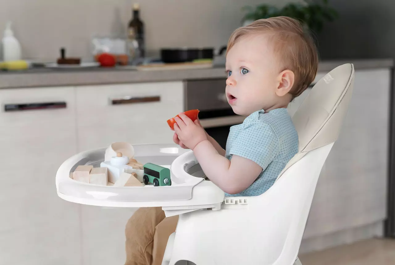Кресло дает возможность свободно регулировать расстояние между лотком и ребенком. Их также можно полностью демонтировать в любое время.