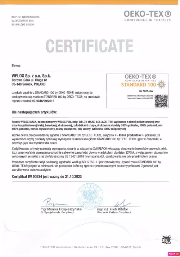 - Комфорт и безопасность: мягкая пенопластовая конструкция обеспечивает безопасные и удобные возможности для игры. Welox® - единственный производитель в Европе, получивший сертификат OEKO-TEX Class I (дети 0+).