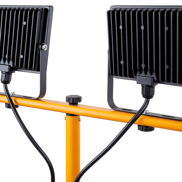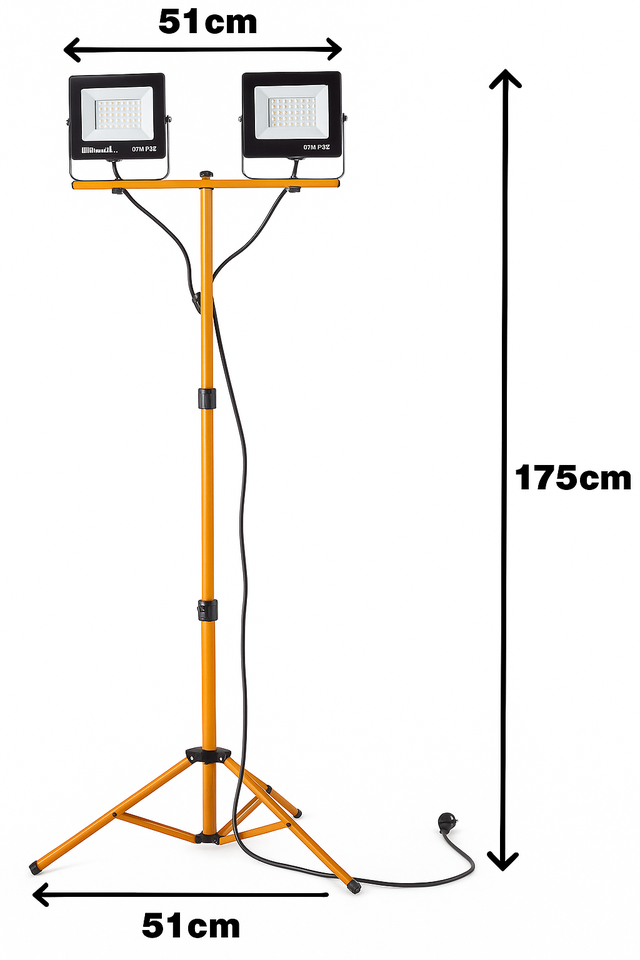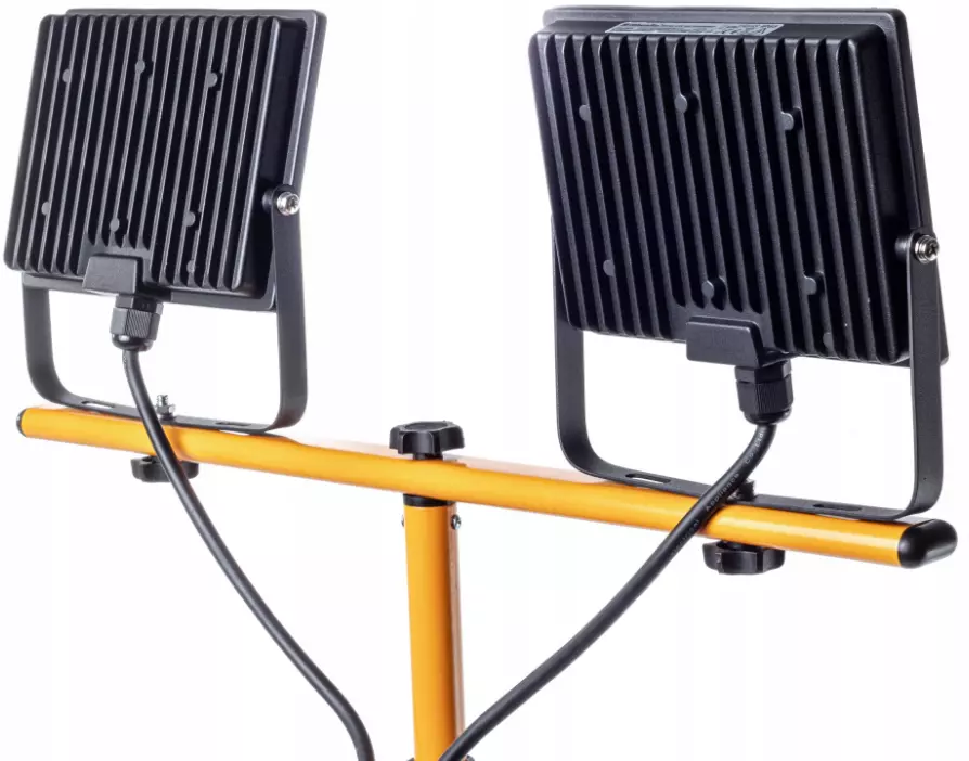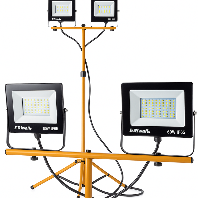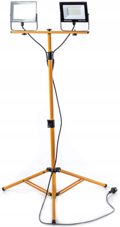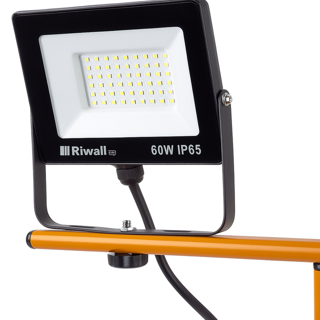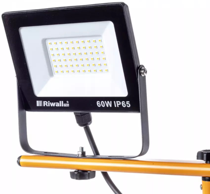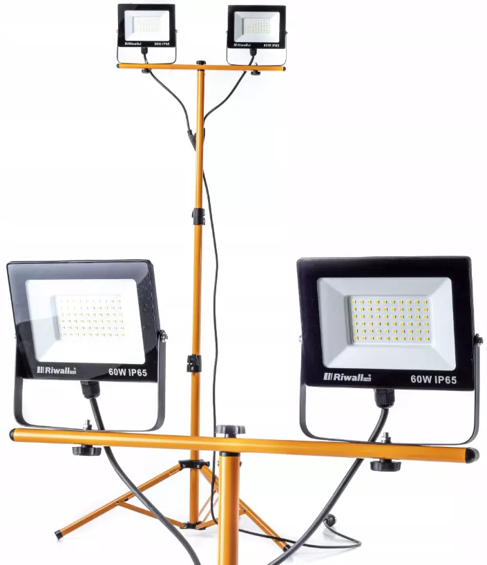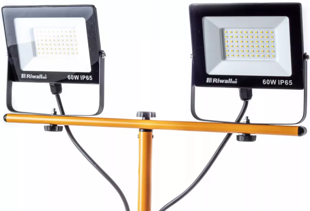 Светодиодный прожектор SMD Riwall на штативе 2x60W 5000K, 2x4500 л - подходит для любого тёмного помещения или площадки.