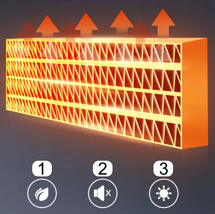 - Позволяет быстрее достигать высоких температур при меньшем потреблении электроэнергии. Это снижает эксплуатационные расходы и обеспечивает более длительный срок службы прибора. Благодаря этому инновационному решению тепловентилятор может эффективно обогревать помещения, снижая при этом потребление энергии, что приводит к экономии средств и долгосрочной эффективности прибора.