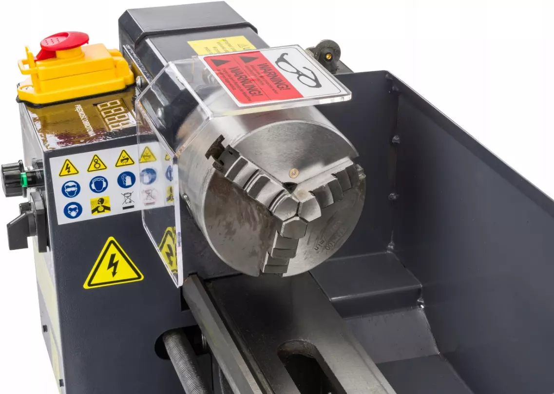Станина мини-токарного станка по металлу изготовлена из высококачественного чугуна, что обеспечивает надежность и долговечность. Нейлоновые шестерни повышают износостойкость, обеспечивая долговечность и точность профессионального уровня. Мощный двигатель 550 Вт обеспечивает полный контроль над любой задачей. Кроме того, брызгозащитный кожух по всей длине обеспечивает максимальную безопасность и защиту.