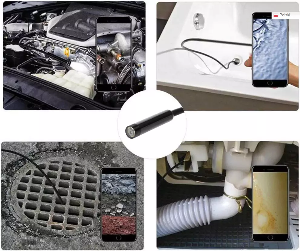 Новая инновационная полностью водонепроницаемая эндоскопическая камера с 8 светодиодами с регулируемой интенсивностью света. Имеет очень гибкий и прочный кабель, наконечник с магнитом, крючок и зеркальце. Камера имеет угол обзора 70 градусов. Теперь съемка и live view в труднодоступных местах больше не будут проблемой.
