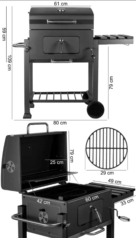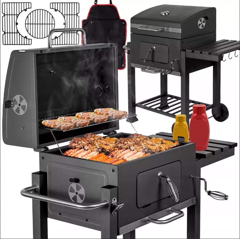 ◾ 3 в 1 ◾ Гриль ◾ Коптильня ◾ Топка ◾ Открывающиеся дверцы ◾ Крышка ◾ 3 ребра ◾ Ручки ◾ ТЕРМОМЕТР ◾.