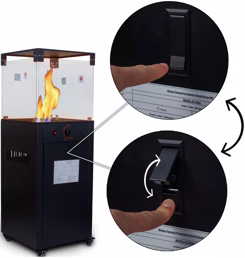 Регулятор расхода газа позволяет регулировать мощность излучения в зависимости от температуры наружного воздуха. Простой источник энергии - сжиженный углеводородный газ (газовый баллон) - обеспечивает мобильность и безопасность.