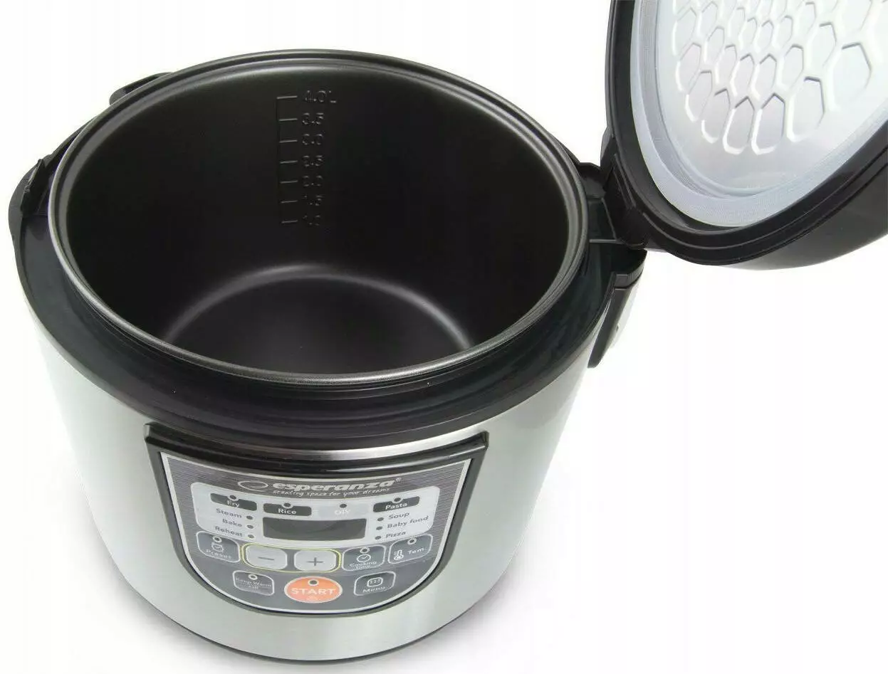 Мультиварка Esperanza является бесценным помощником на кухне и дает множество преимуществ. Он имеет различные функции приготовления пищи, например: жарка, приготовление картофеля фри, приготовление на пару или выпечка тортов и хлеба.