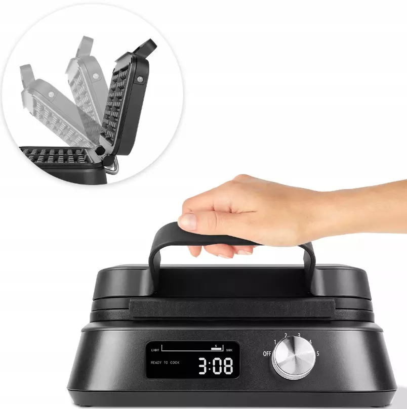 - Регулировка мощности - 5-ступенчатая регулировка интенсивности выпечки для идеальной хрустящей корочки вафель