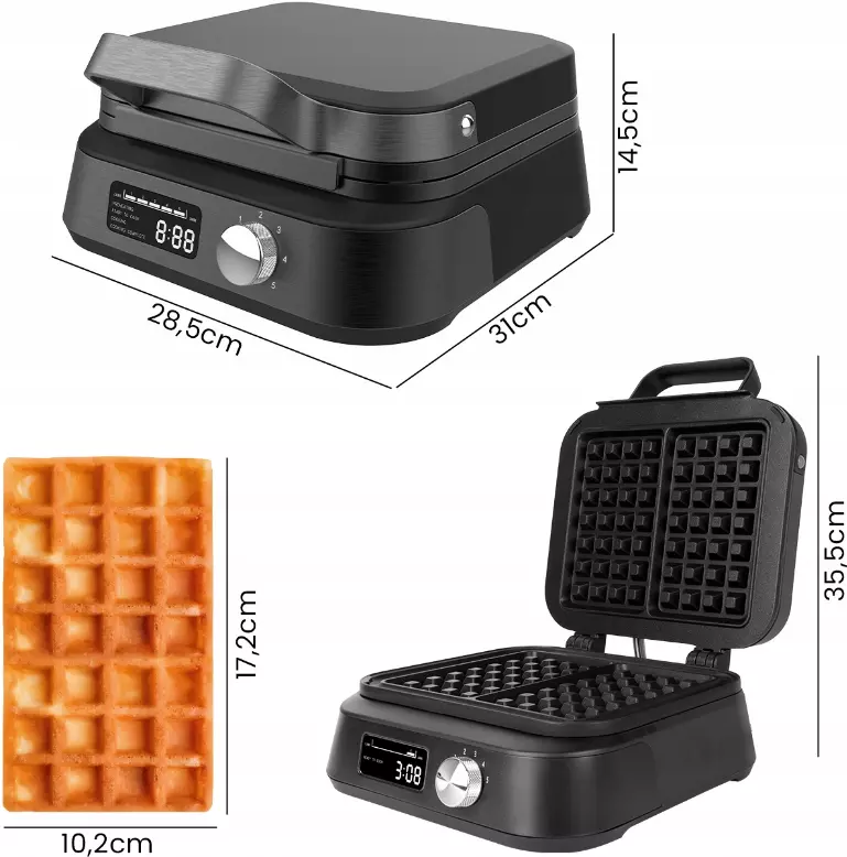 - Компактный и элегантный дизайн - современный, элегантный дизайн вафельницы идеально впишется в любую кухню, а ее компактные размеры позволят легко хранить ее
