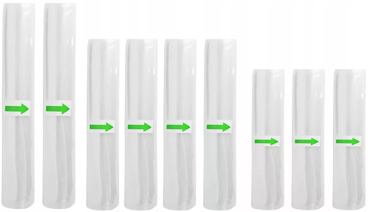 В наборе целых 9 рулонов запечатывающей фольги и 5 больших вакуумных пакетов в виде десятого рулона!