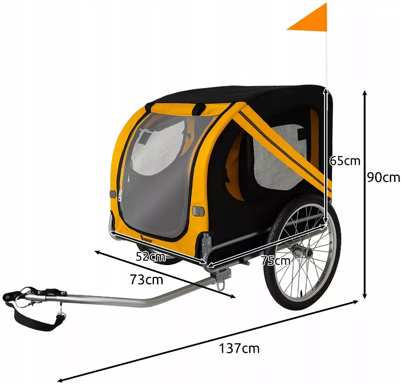 Велоприцеп для собак был разработан для крупных собак, которым нужно больше места, чтобы удобно сидеть и лежать. Внутреннее пространство размером 75 x 52 x 65 см подходит для собак среднего и крепкого телосложения. Это идеальный выбор для таких пород, как: