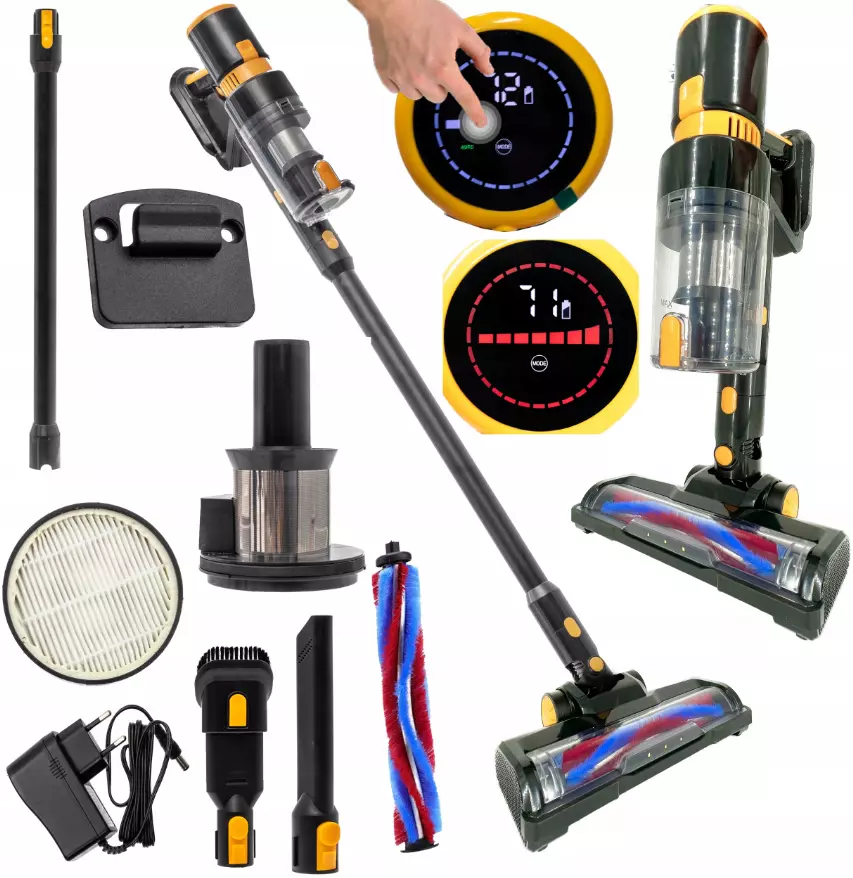 Пылесос оснащен светодиодным дисплеем, на котором вы сможете проверить уровень заряда аккумулятора, оставшееся время работы и установить мощность!
