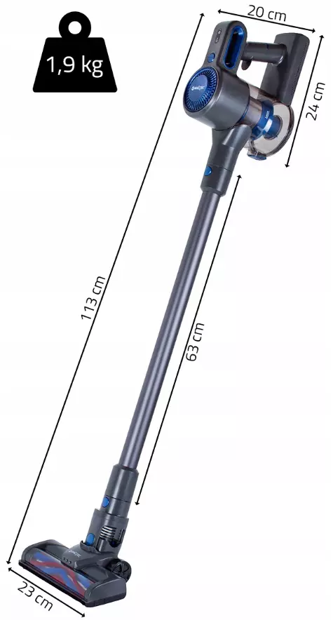 Все устройство вместе с основной щеткой весит всего 1,9 кг и имеет