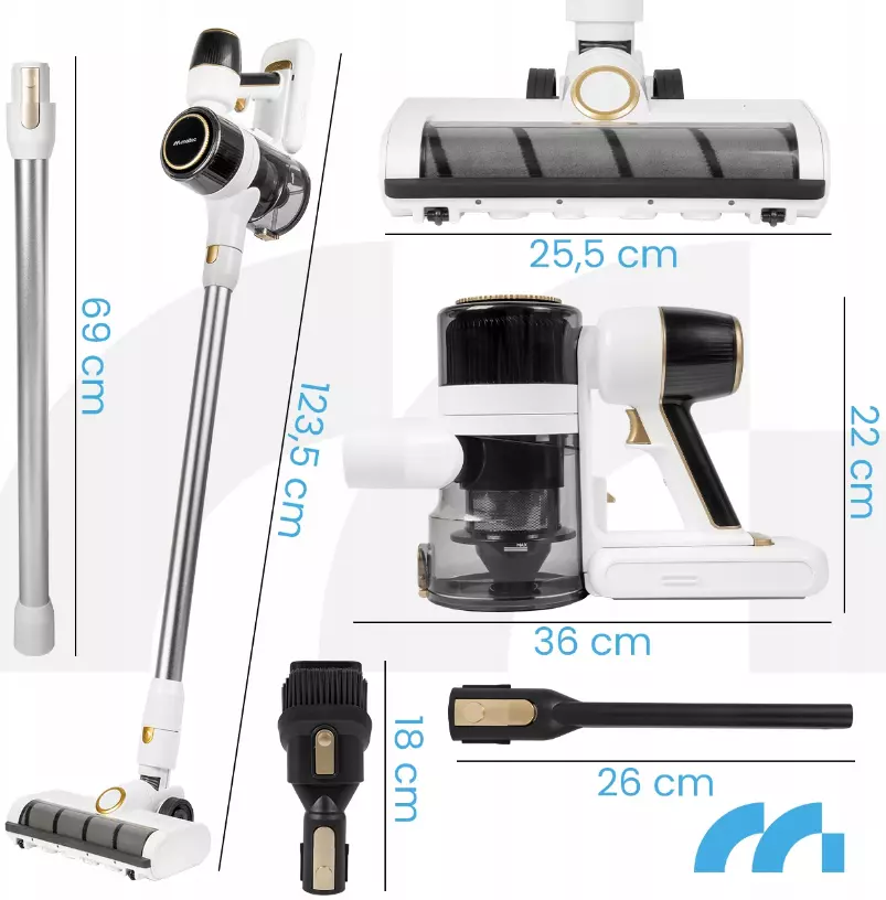 - Размеры пылесоса: 123,5 x 22 x 11,5 см