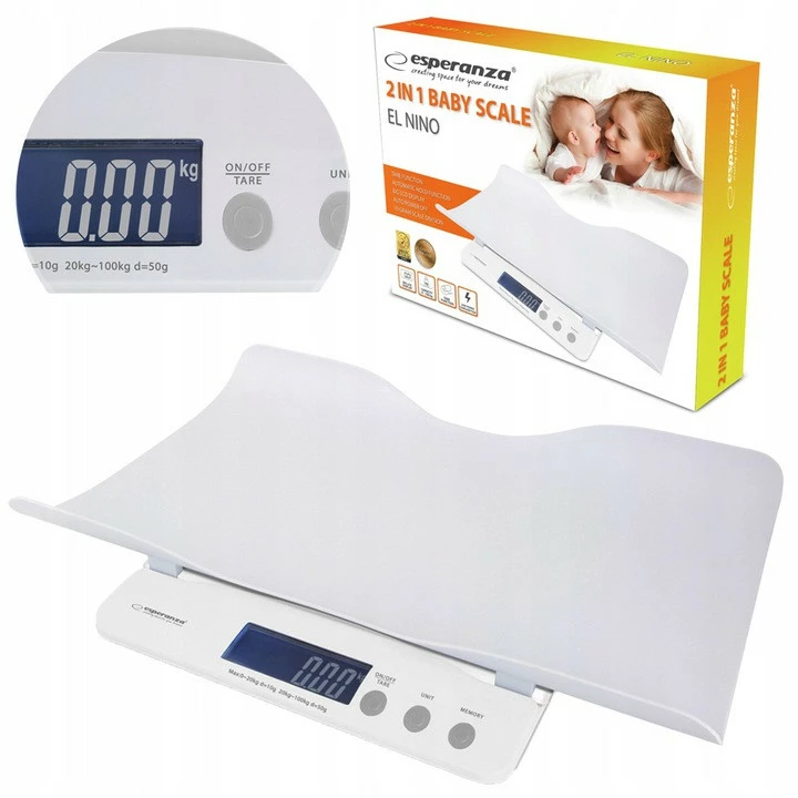 - Благодаря функции «2 в 1» весы Esperanza можно использовать не только для взвешивания младенцев (до 20 кг), но также детей и взрослых (до 100 кг). Весы Esperanza могут сопровождать вашего ребенка на протяжении всего его развития.