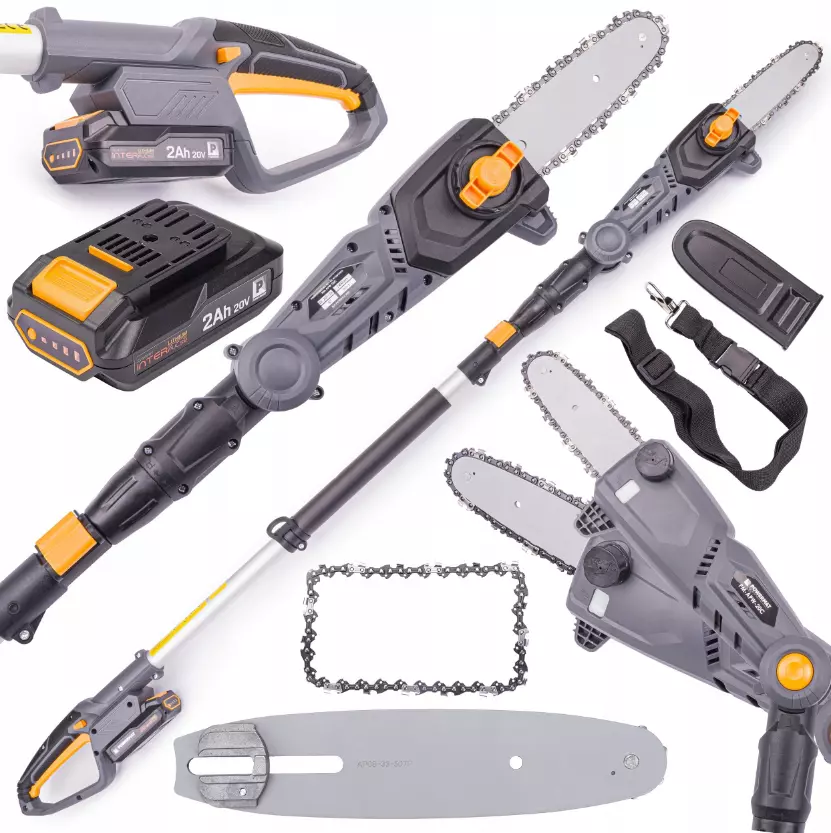 - Электропила на удлинителе с четырехградусной регулировкой угла наклона POWERMAT PM-APW-20C с высококачественной направляющей шиной и цепью. Возможность быстро и легко регулировать длину удлинителя от 172 см до 240 см и возможность регулировать угол наклона режущей головки в четыре градуса делает обрезку деревьев очень простой.