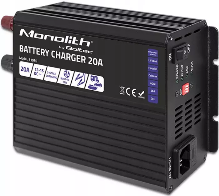 Интеллектуальное зарядное устройство Qoltec Monolith для LiFePO4 AGM GEL SLA аккумуляторов | 20A | 12V