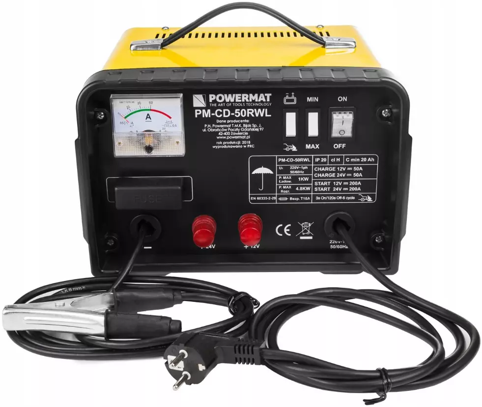 Высококачественное автоматическое и точное зарядное устройство POWERMAT PM-CD-50RWL. Отлично подходит как для профессиональных автосервисов и мастерских, так и для домашних гаражей. Устройство может заряжать аккумуляторы напряжением 12 и 24 В.