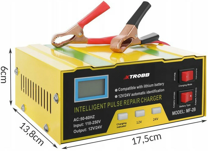 ✅ Высокая совместимость - устройство управляется микропроцессором, который автоматически регулирует ток зарядки в соответствии с напряжением. Он имеет функцию автоматического определения напряжения батареи (12 В или 24 в). Он отлично работает с литиевыми, кальциевыми, AGM, что означает, что его можно использовать в автомобилях, мотоциклах, газонокосилках, лодках и других транспортных средствах.