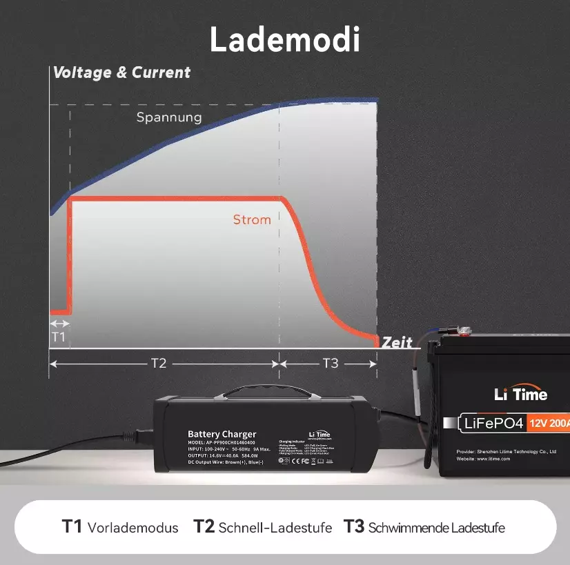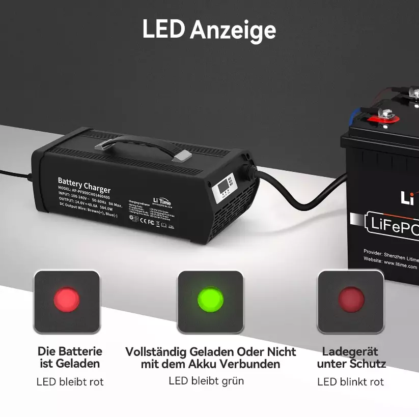 【Зарядное устройство для литиевой батареи 14,6 В】Зарядное устройство для литиевой батареи LiTime 14,6 В, 40 А предназначено для литиевых батарей LiFePO4 12 В (12,8 В). Наше зарядное устройство поддерживает функцию зарядки 0 В для повторной активации или ремонта аккумуляторов, которые не использовались в течение длительного времени. Характеристики зарядки: 12,8 В | Зарядный ток: 40А | Номинальное входное напряжение: 100–240 В переменного тока.
